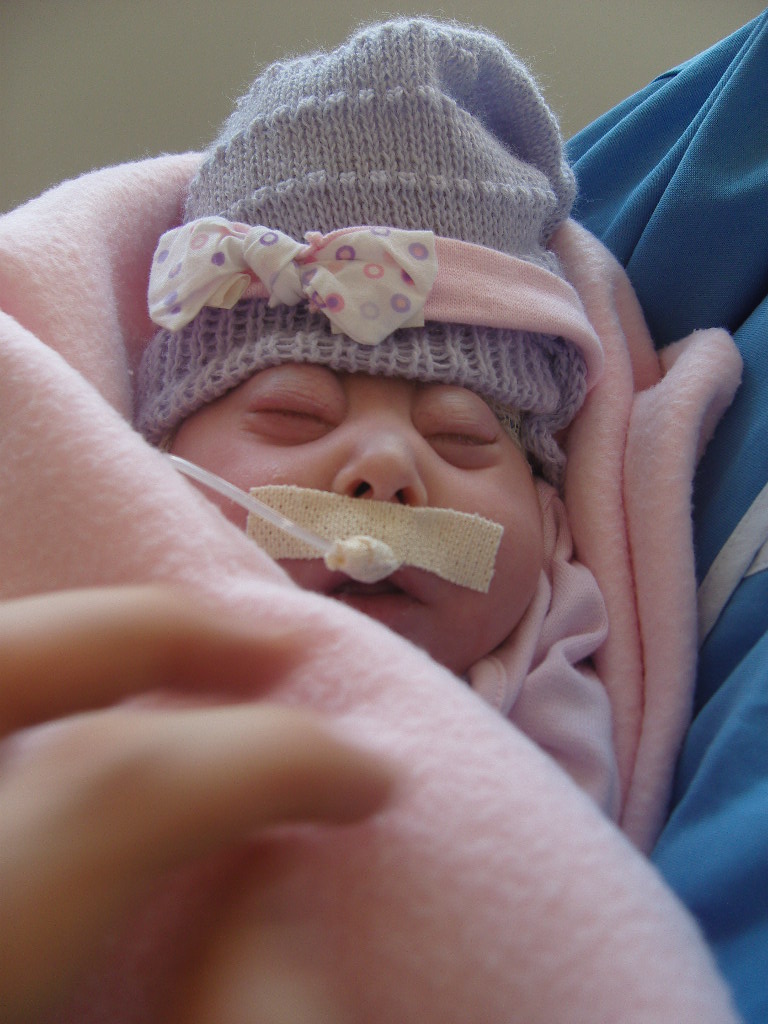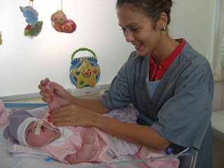 Ela ainda vomita de vez em quando, mas está conseguindo ganhar peso, já está com cerca de 2.900 Kg - ela já conseguiu ultrapassar mais de um quilo acima do seu peso de nascimento, que foi 1.785 kg. Outra boa notícia é que ela está ficando cada vez mais comprida, na última mensuração ela já estava com 48 cm - 10 centímetros a mais do que quando nasceu!